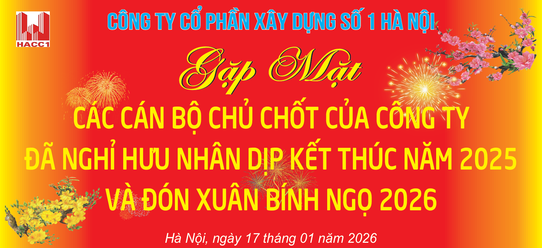 Ngày 17/01/2026, Công ty Cổ phần xây dựng số 1 Hà Nội tổ chức buổi gặp mặt và tặng quà đối với cán bộ chủ chốt của công ty qua các thời kỳ đã nghỉ hưu nhân dịp kết thúc năm 2025 và chuẩn bị bước sang năm Bính Ngọ